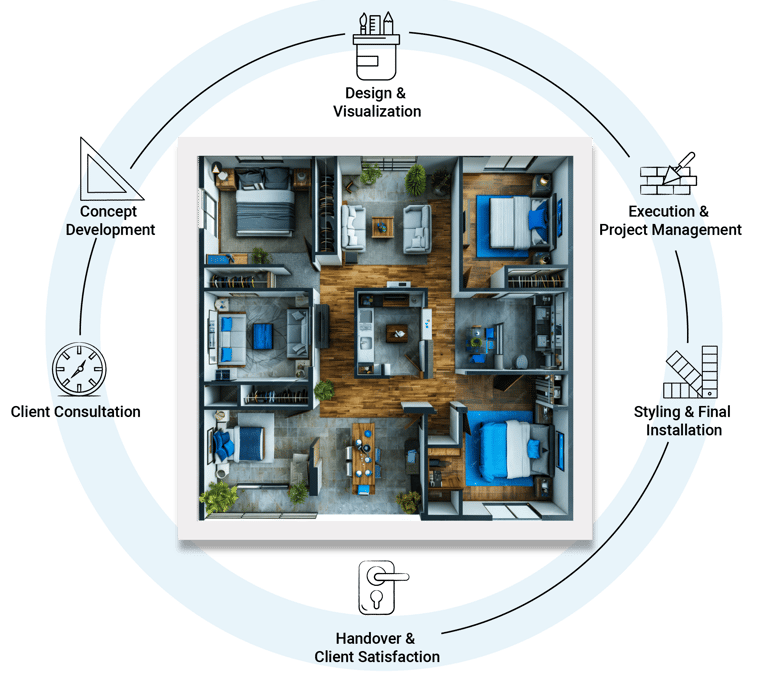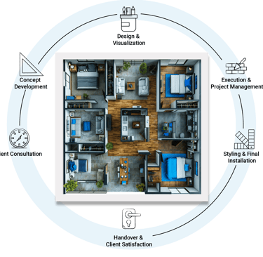 Complete Home Interior Solutions From design to delivery, we handle it all - modular interiors, false ceilings, civil work, painting, electrical and plumbing, flooring, and tiling. Whether new or renovated, Vedanth Interiors transforms your home into a stylish, functional space that truly reflects you.